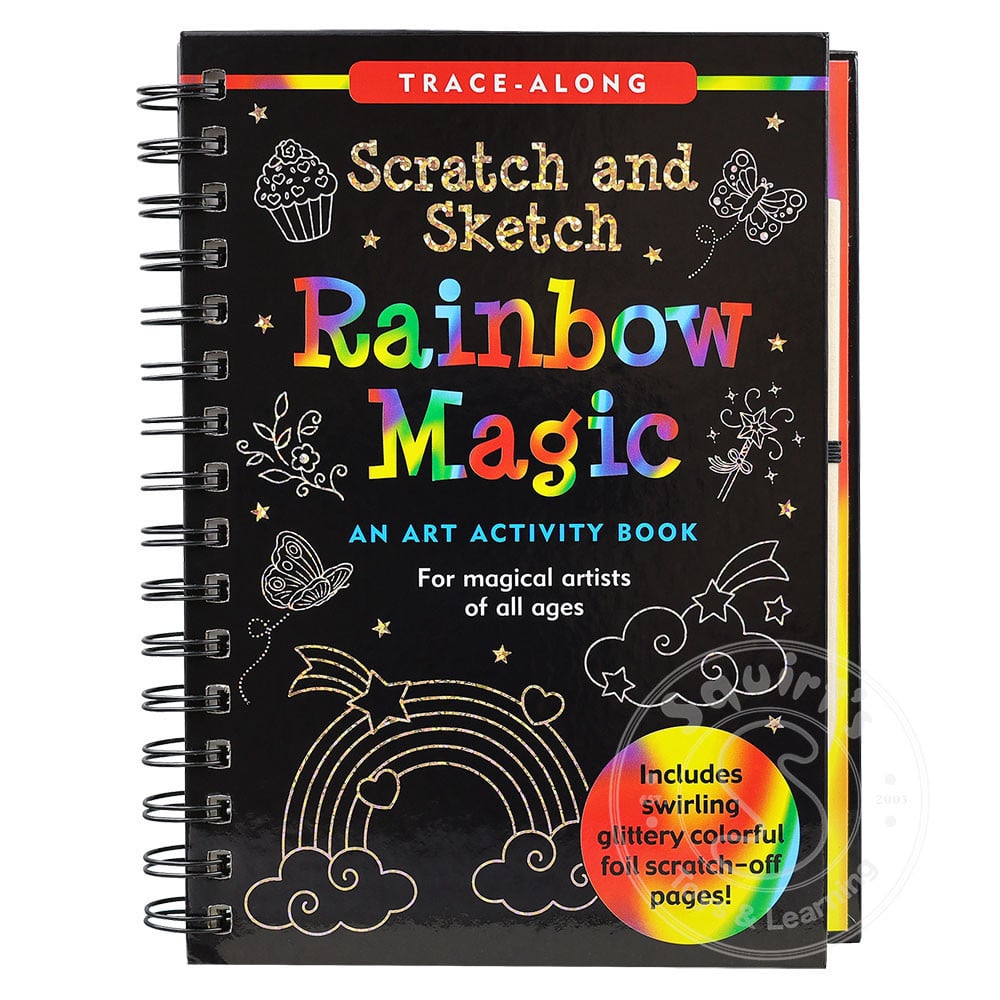 - This is a Trace-Along Scratch and Sketch! Use the wooden stylus included to trace the white outlines on the black-coated pages and reveal the glittery foil colors beneath!
