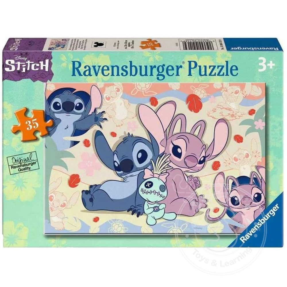 Hang out with iconic Stitch, Angel and Scrump as you piece together this 35 piece bright and colourful jigsaw puzzle! Can you count how many different versions of Stitch you can see?!