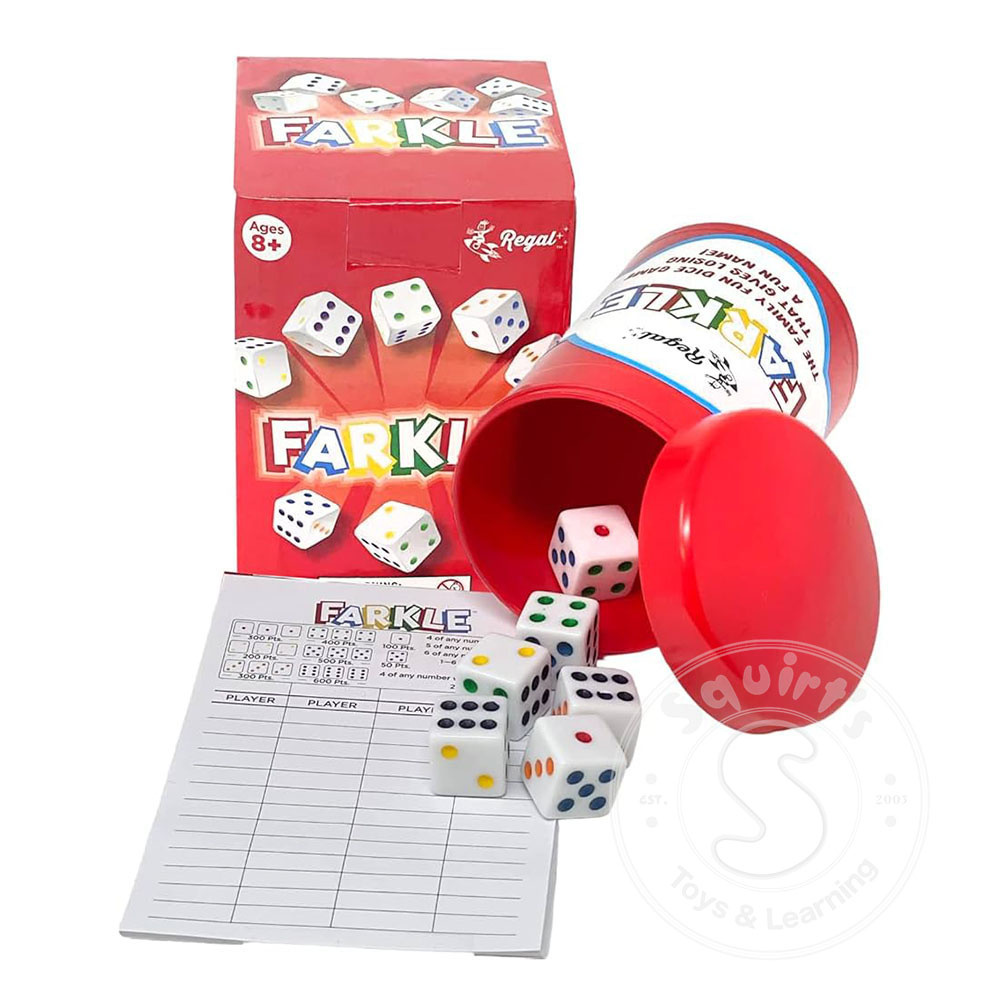 Farkle Fun: Whether you want to play with your family, organize a game night with friends, or just seek some entertainment, this Farkle Classic Dice Game is suitable for any occasion. It includes 6 colored dice, a plastic dice cup, 25 scorecards...