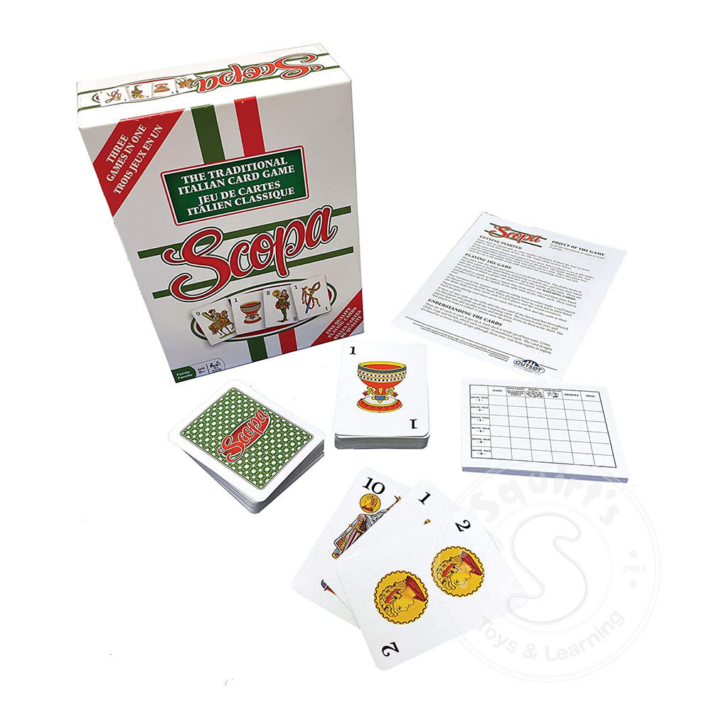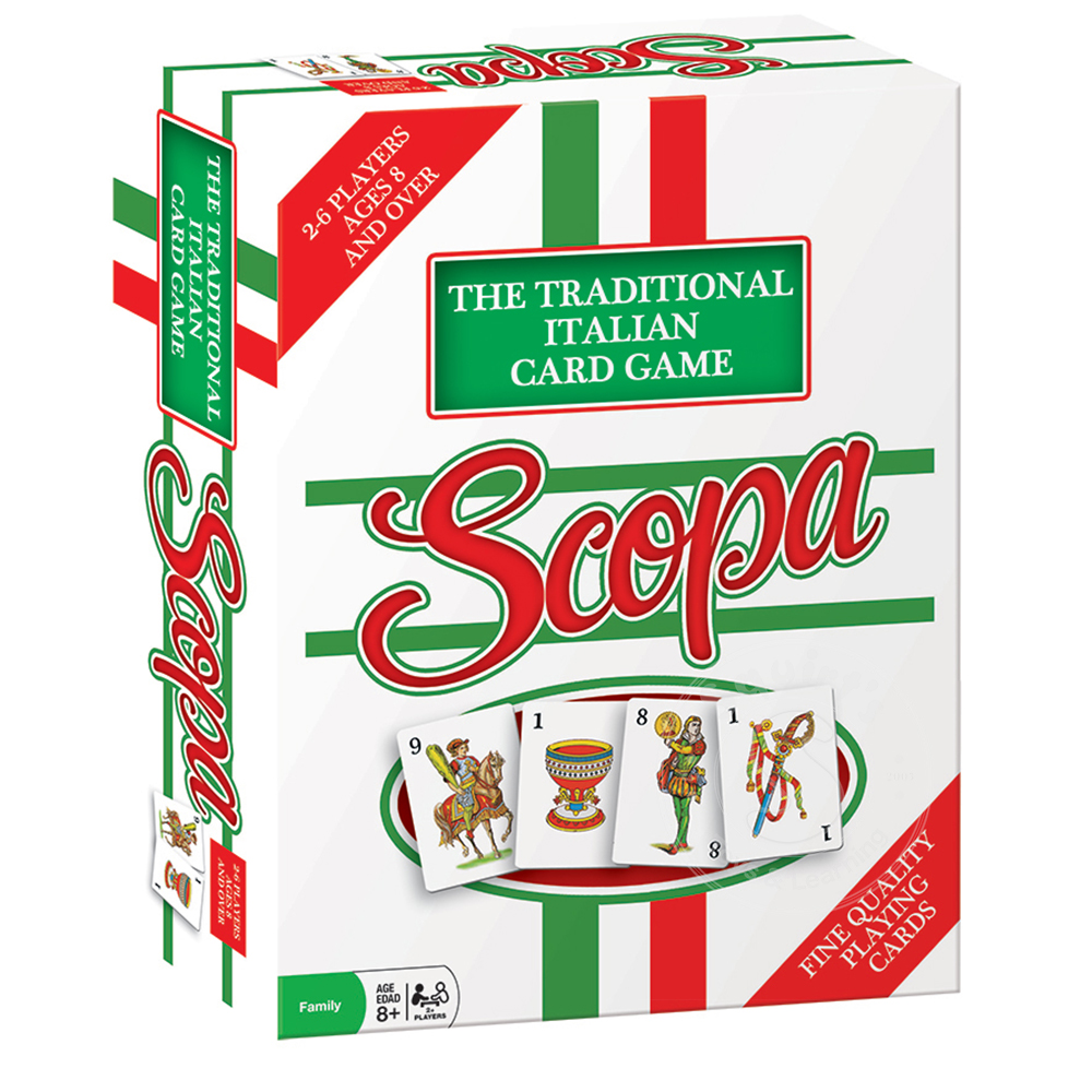 Italian Scopa is a centuries old card game requiring memory, skill, strategy and a little luck. Scopa is easy to learn, a challenge to master, and just plain fun for the whole family. Great entertainment when family and friends get together for game...