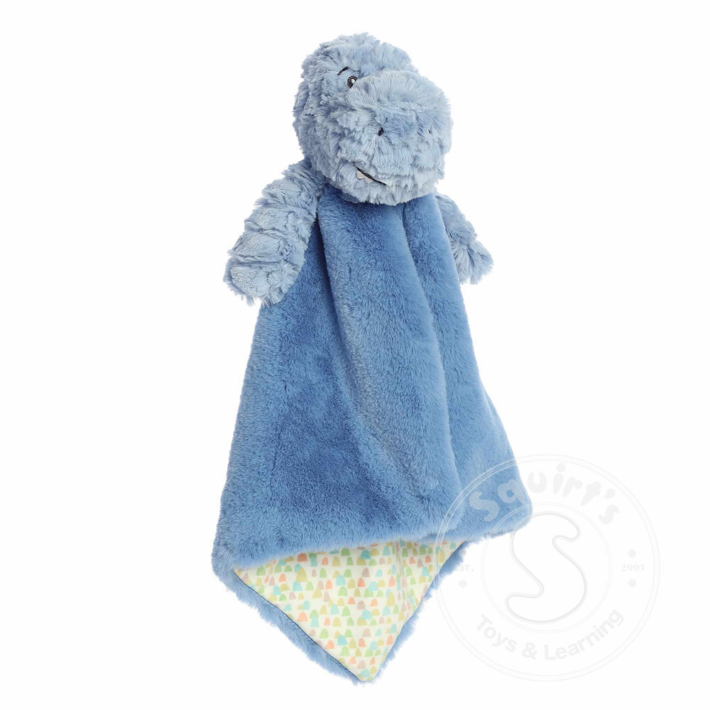 Crafted from soft, textured blue fabrics that are as inviting as a warm hug, Theo T-Rex features a cute dinosaur head with playful expressions and a body that doubles as a comforting blanket. This unique combination of dinosaur delight and snug comfort makes Theo an ideal companion for naptime, playtime, or anytime your baby needs a soft embrace.