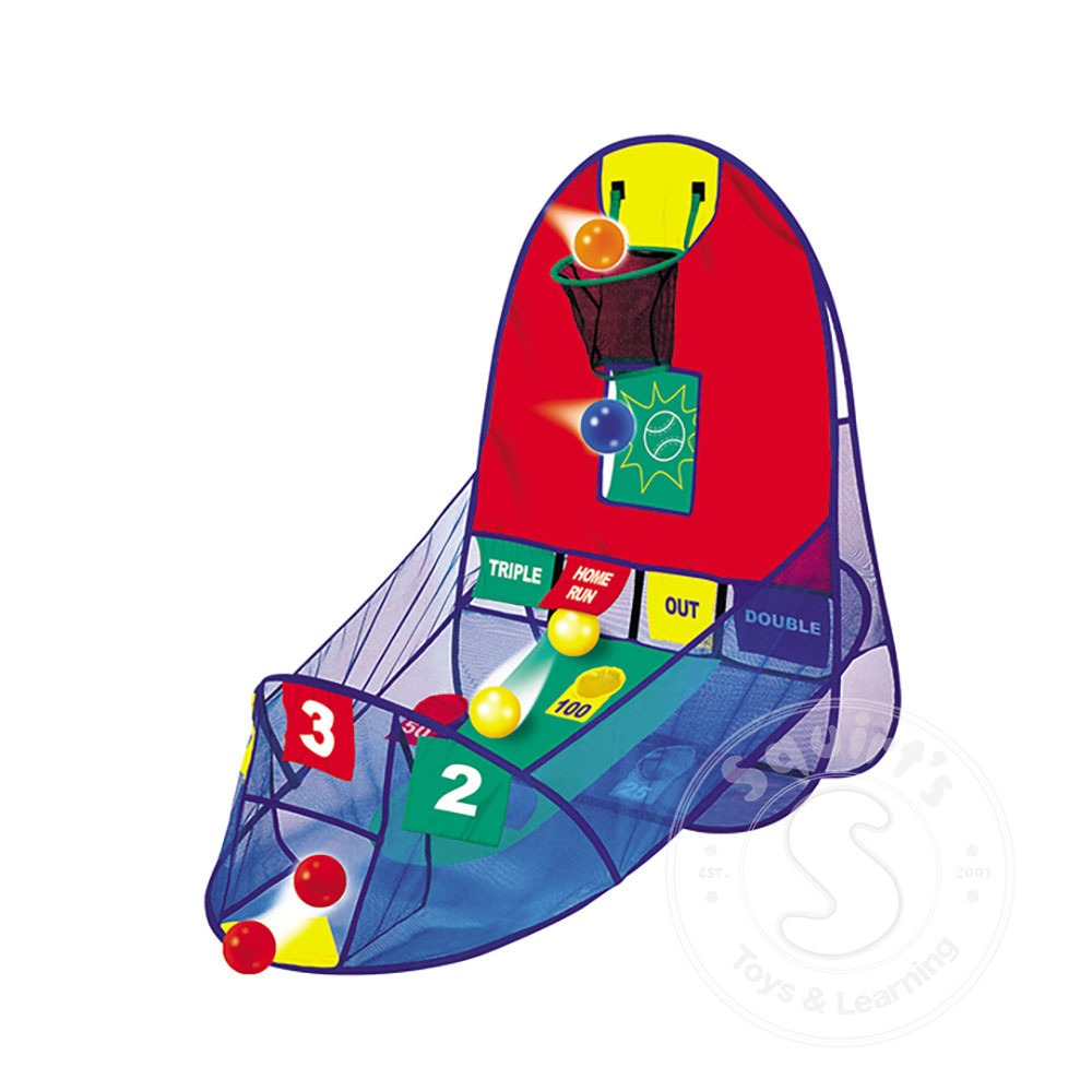 Play basketball, baseball or skeet-ball with this collapsible target game! It measures 42” x 42” x 30” when assembled, and will collapse down to a diameter of 16”.I ncludes a net carry-bag & 5 balls (Size: 2.25”).