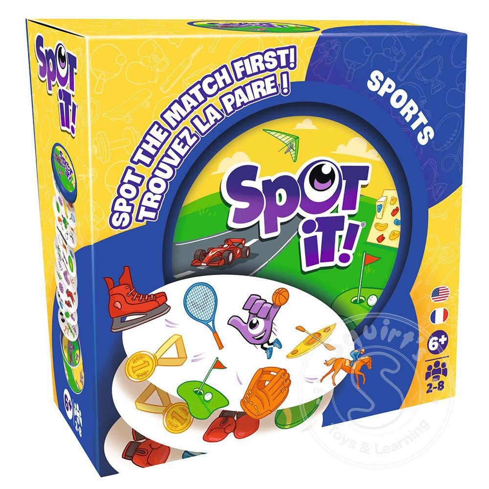 In Spot-It, there is only one common symbol between any two cards. Be the first to spot the match to win!This sports edition features symbols inspired by a wide range of sports. Perfect for sports enthusiasts of all ages! Classic speed and...