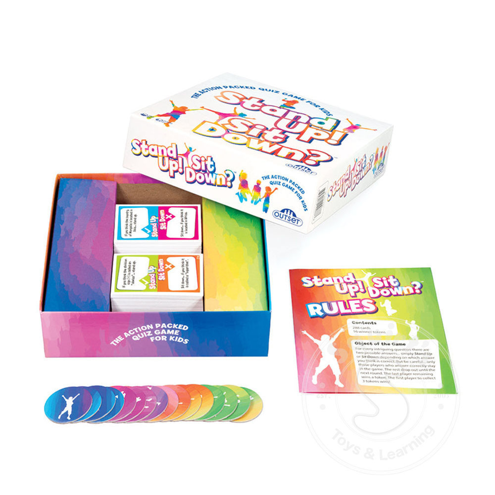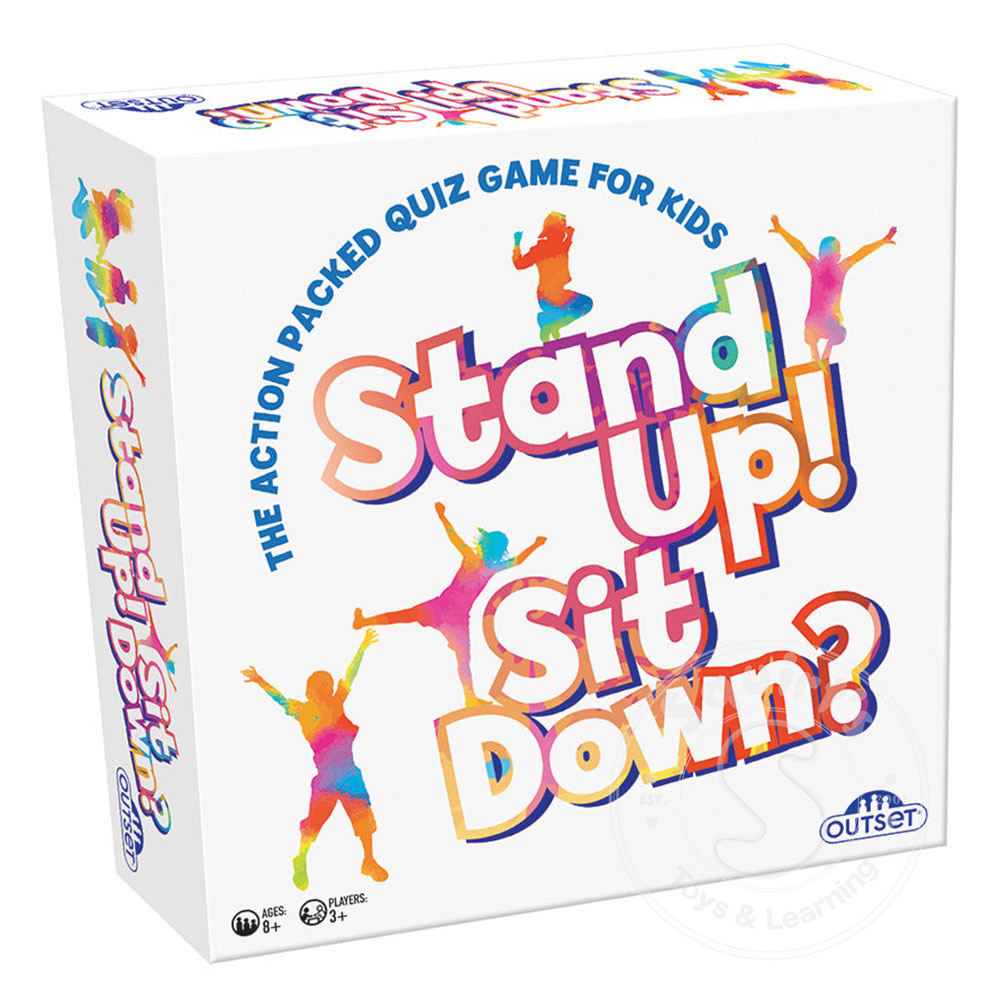 STAND UP! SIT DOWN? is the high-energy game of quick decisions and lively fun! Each question comes with two possible answers—stand or sit based on what you think is correct. It’s a game of wits, reflexes, and a little luck. The last person...