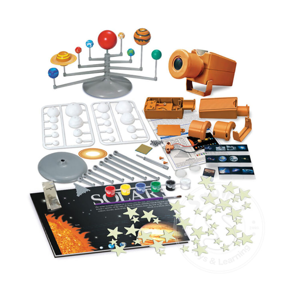 Far out! Ideal for budding young astronomers and space enthusiasts, this deluxe kit allows kids to build a solar system planetarium model, construct a space projector that shows cool space-themed slide shows, and also decorate your room with a giant...