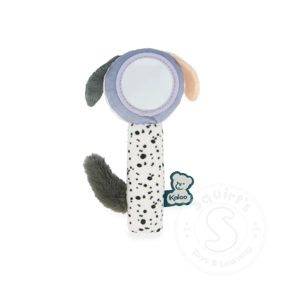 Thanks to its size, perfectly suited for tiny hands, the rattle is easy to grasp and helps develop fine motor skills. With its mirror feature, this adorable puppy promotes visual exploration. Baby can see their reflection and have fun recognizing themselves while cuddling their new companion. When shaking the rattle, baby also stimulates their sense of touch through the different textures.
