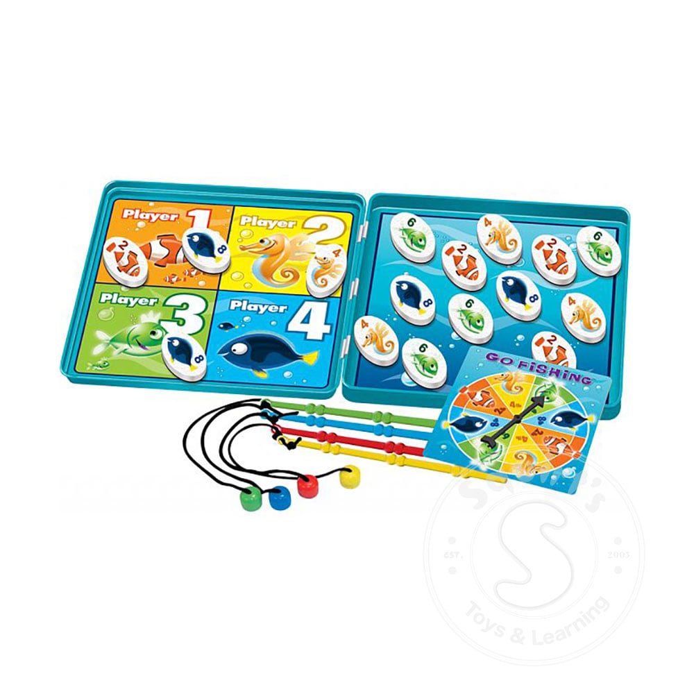 Content: 16 Magnetic Fish, 4 Magnetic Fishing Poles, Spinner, Magnetic Game Board, Rules