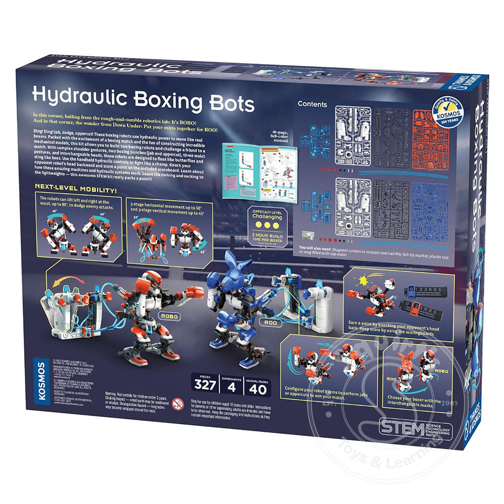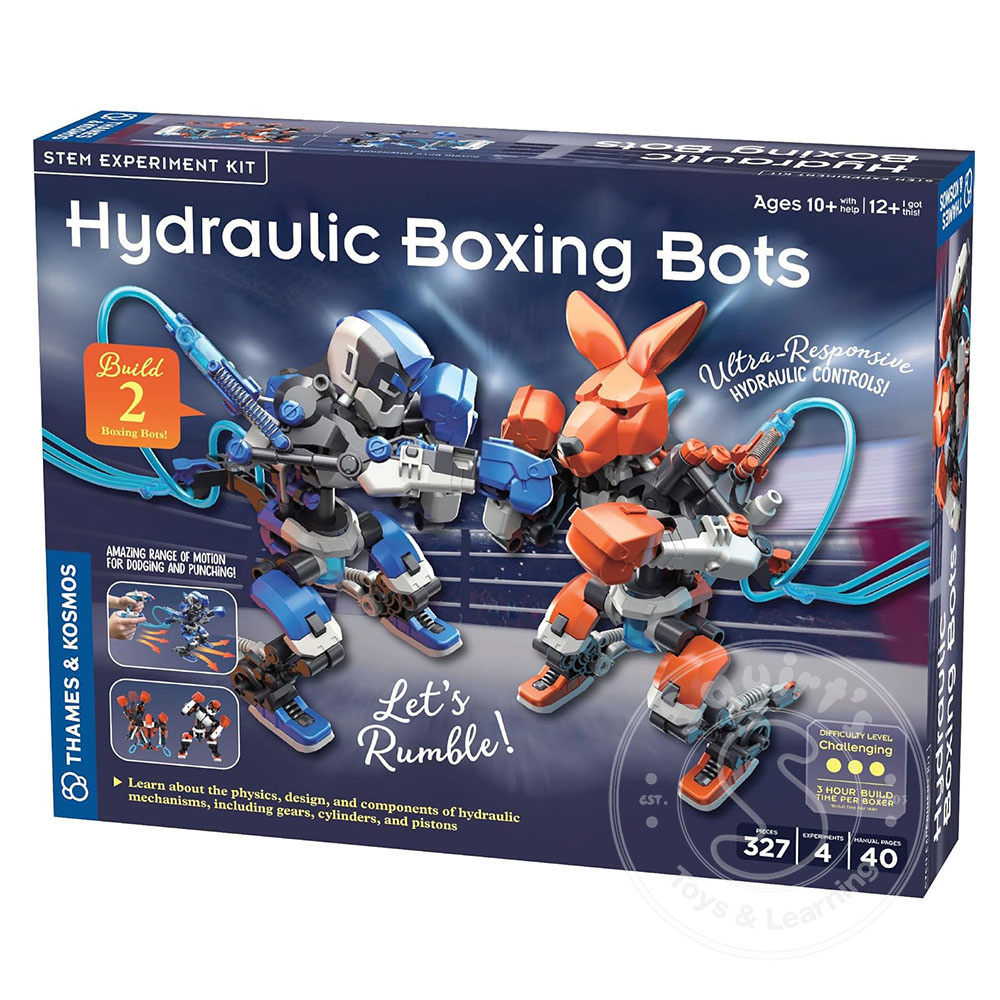 Kit includes the parts to build two boxing bots plus a scoreboard so that you can challenge a friend to a hydraulic robot battle.