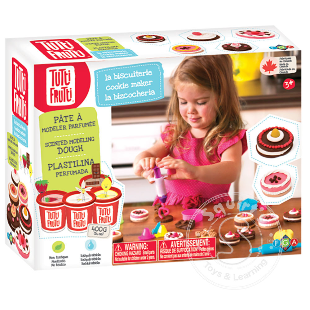 What a shame you won't be able to eat these delicious looking cookie creations. With 4 tubs of scented modelling dough, cutters, molds and baking tools, children can serve up some pretend play goodies to their friends and family members. Cut out...