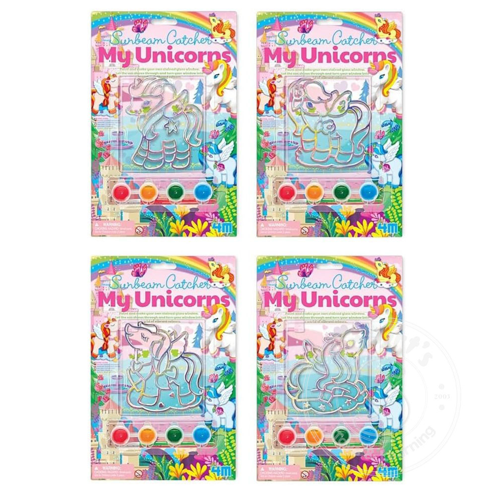 Paint & create your own unicorn-themed stained glass window! Includes paint-strip of 4 colours and paintbrush. Size: 4.5”H x 4”W.