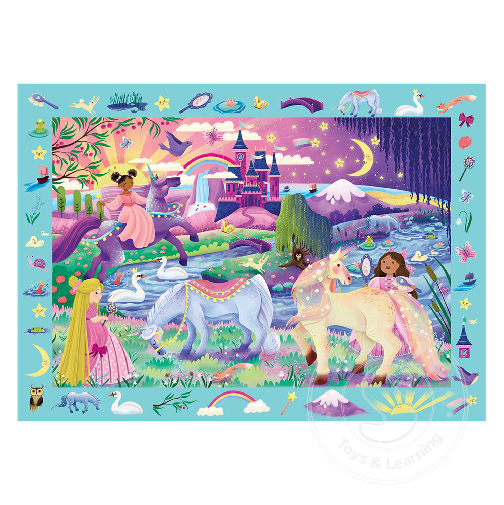 t's two fun activities in one! Piece together this beautiful Unicorns puzzle, then, within the picture, find the dozens of creatures and objects illustrated all around the puzzle border! It's puzzle-solving and seek-and-find fun all in one!...