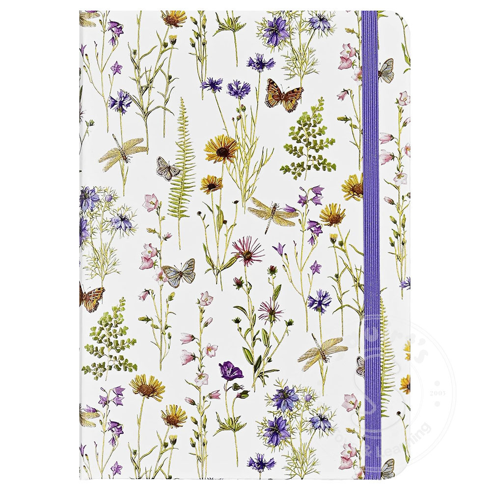 Softly hued butterflies, dragonflies, ferns, and flowers are combined with shimmering gold foil embellishments on the covers of this lovely small-format journal. Raised embossing lends texture; gloss highlights add polish...